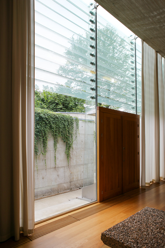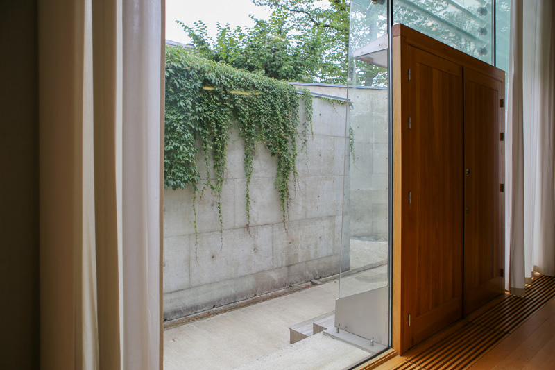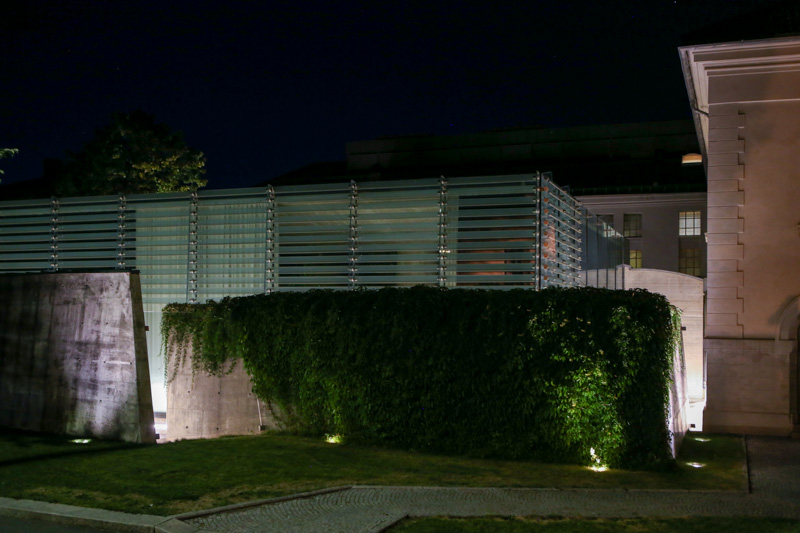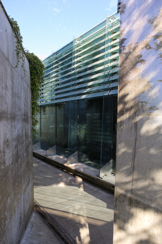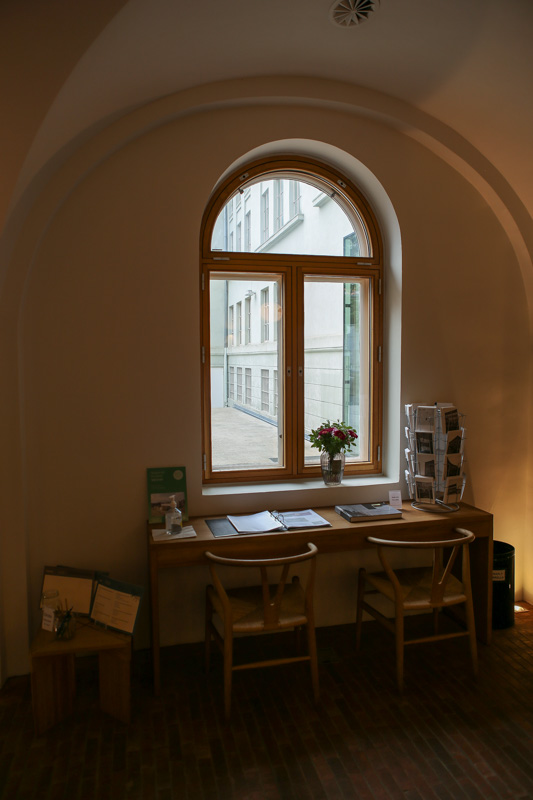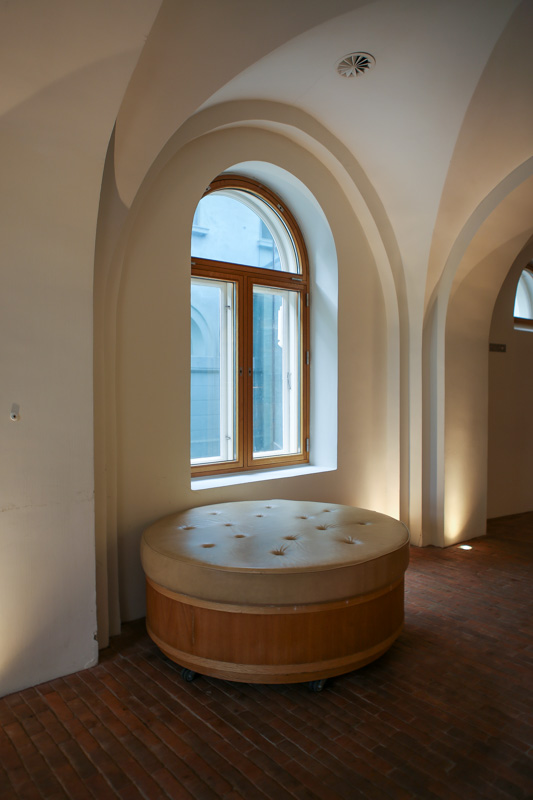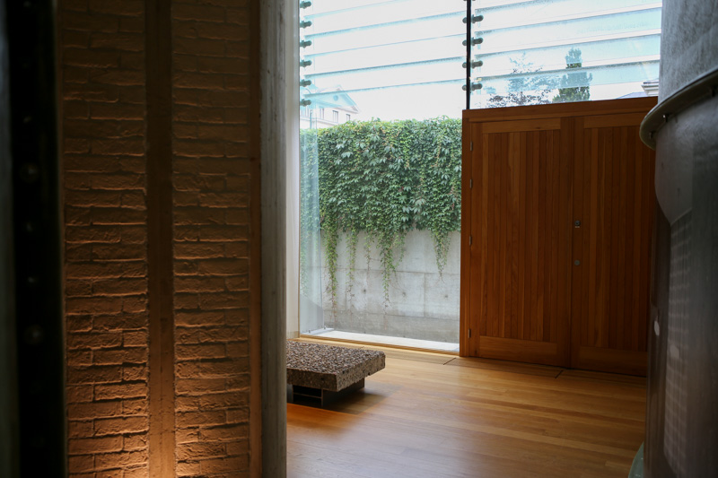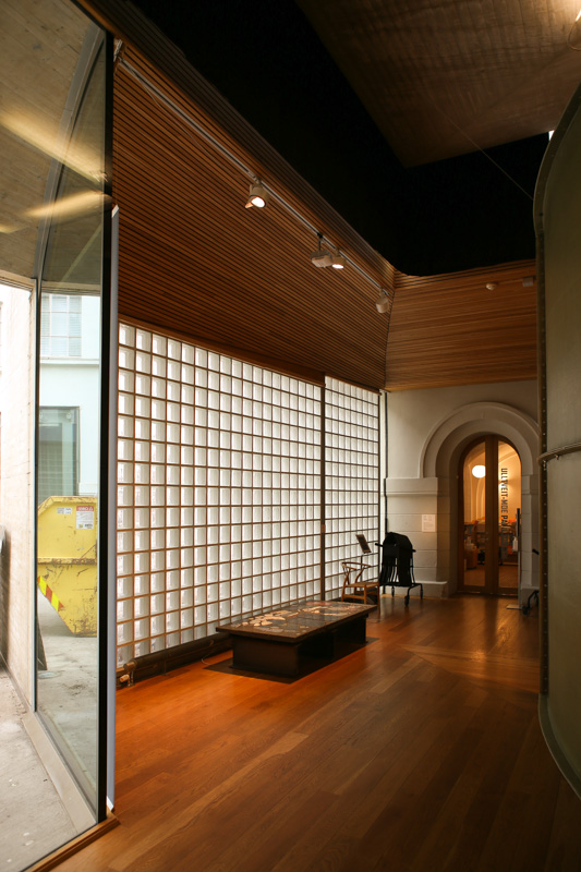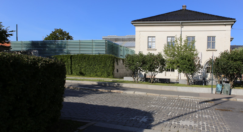 The Architecture Museum addition was finished in 2002. Today it houses National Museum - Architecture, which is the most most important architecture collection in Norway. The main building was originally designed by Norwegian architect Christian Heinrich Grosch in 1828 for the Norwegian Central Bank. Fehn repurpused the original building and build the pavillion, a modern addition. The pavilion is meant to accomodate changing exhibitions, and consist of a single open room. The walls are mostly glass, but there is a concrete wall going around the building, that makes the space quite secluded and introvert.