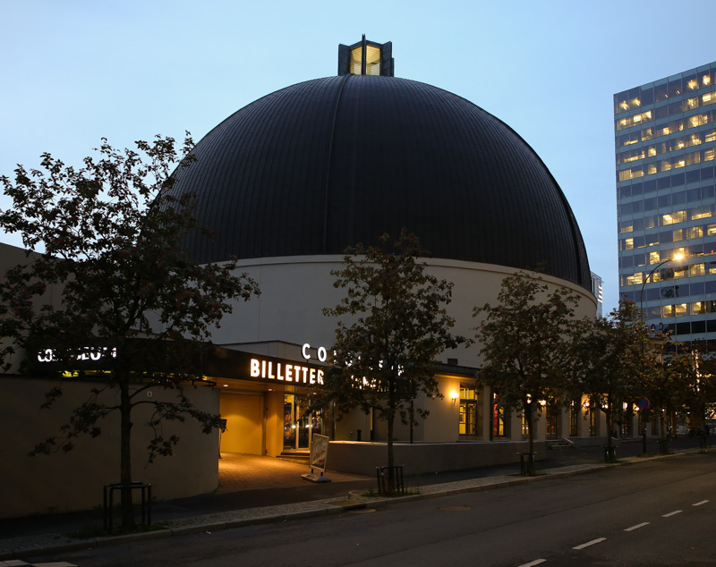 The Colosseum Cinema was originally built in 1928 and is still among the largest cinemas in the world. The whole building was rebuilt in 1964, after a fire, and Fehn directed the rebuilding. The exterior has much of the old shape and expression, but the dome was expanded slightly. The interior was renewed.