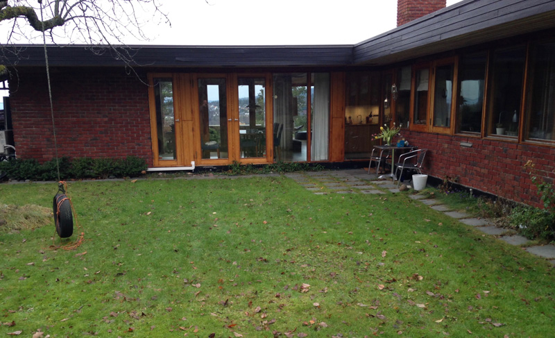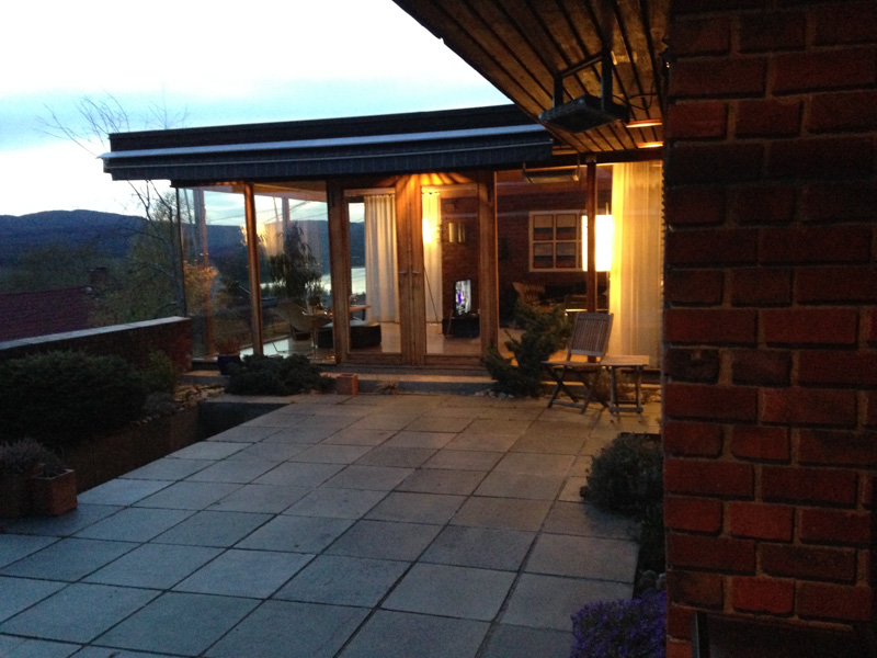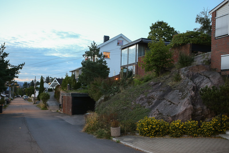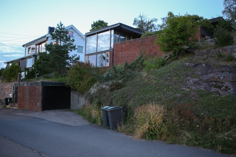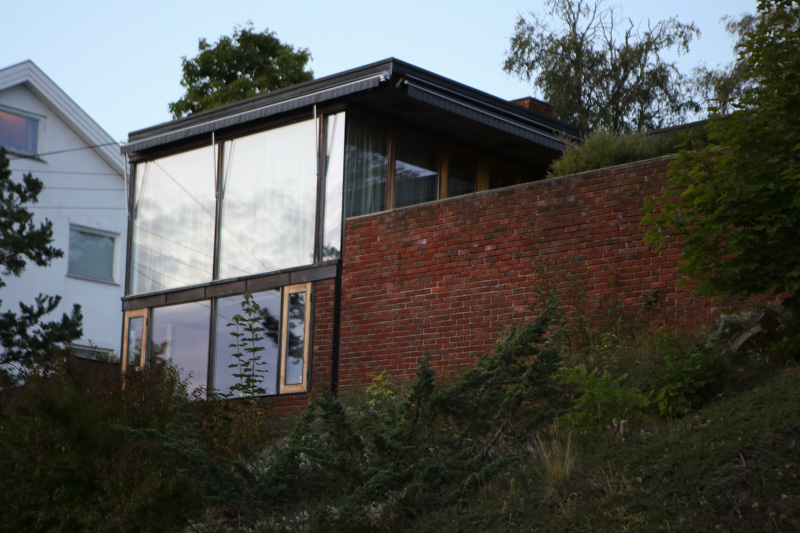 Villa Skagestad was build for theater director Tormod Skagestad and his family in 1964 in the northernmost part of Oslo. The villa is situated in a quite steep mountain side and the house is anchored to this, with a long stairway from the access to the enterance. Most of the building is hidden for public view because of the elevation and a terrace placed towards the street and the view.