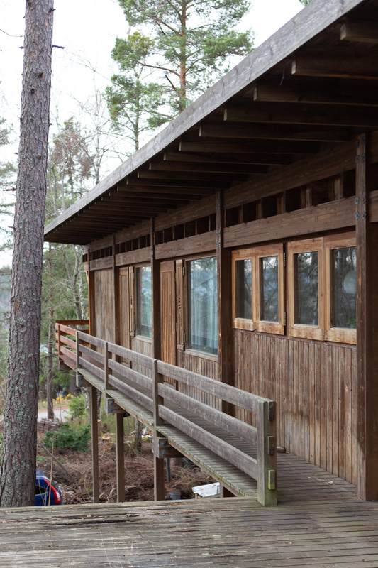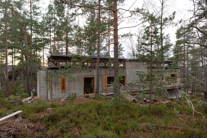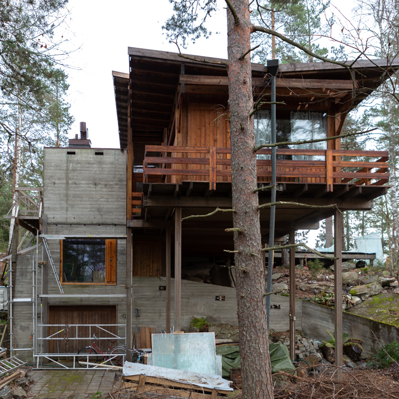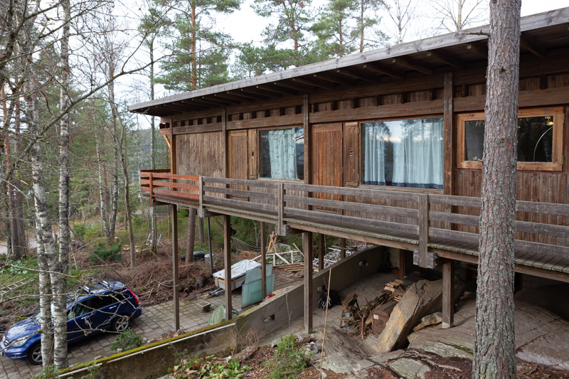 Villa Sparre was built in 1970 at Skedsmokorset in the vicinity of Oslo. The nature location was developed as a residental area with a group of engineering collegues as central actors. Sparre was one of these. Several of the buildings were designed by another architect, but they had limited capacity, and recommended Fehn for Sparre. The house was first designed for a family of four, but had to be redrawn as there came another child.